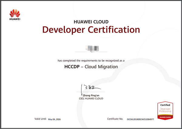 經(jīng)過培訓(xùn)賦能和考試認證,訊方技術(shù)華為云事業(yè)部已有18人獲取華為云開發(fā)者-云遷移HCDDP-Cloud Migration證書。