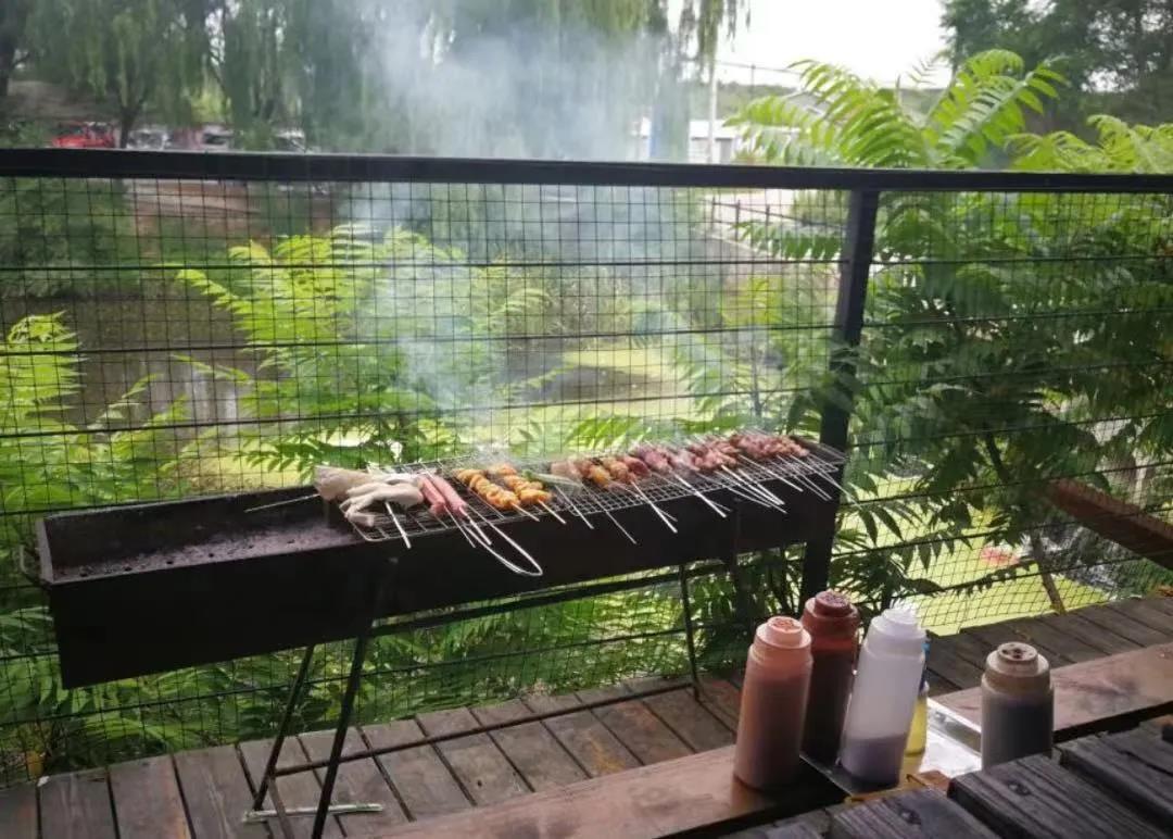 吃著清甜的水果和香噴噴的燒烤