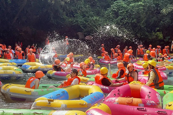 時而隨波激流飄蕩,驚險刺激,時而憑靜水悠然,靜享峽谷自然風(fēng)光。坐在皮艇上體驗漂流帶來的刺激,河水清澈涼爽,撲打在身上實在舒服。